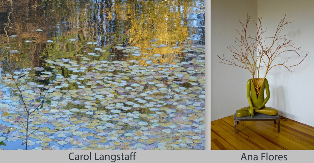 The two artists in this exhibit have had studios in rural settings for some time; Carol Langstaff has been a long time resident in the hills of Vermont, Ana Flores lives next to a forest in Southern Rhode Island. Over time they have discovered that an unspoken dialogue with the natural world, propels much of their vision. This comes from living intimately in a place that is still ecologically whole, with more species other than humans sharing the land.