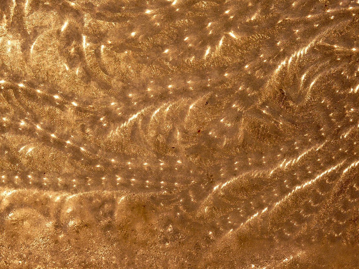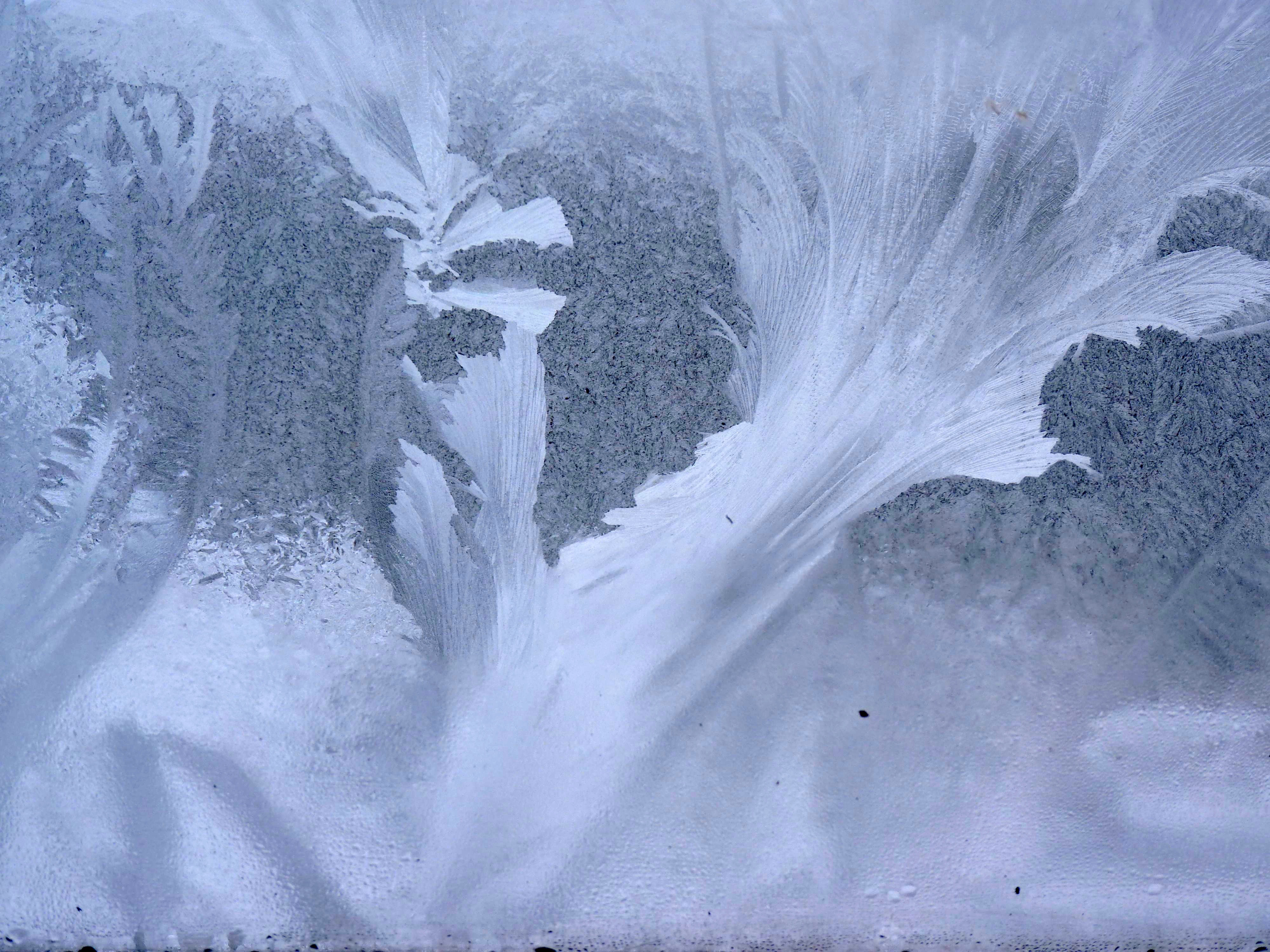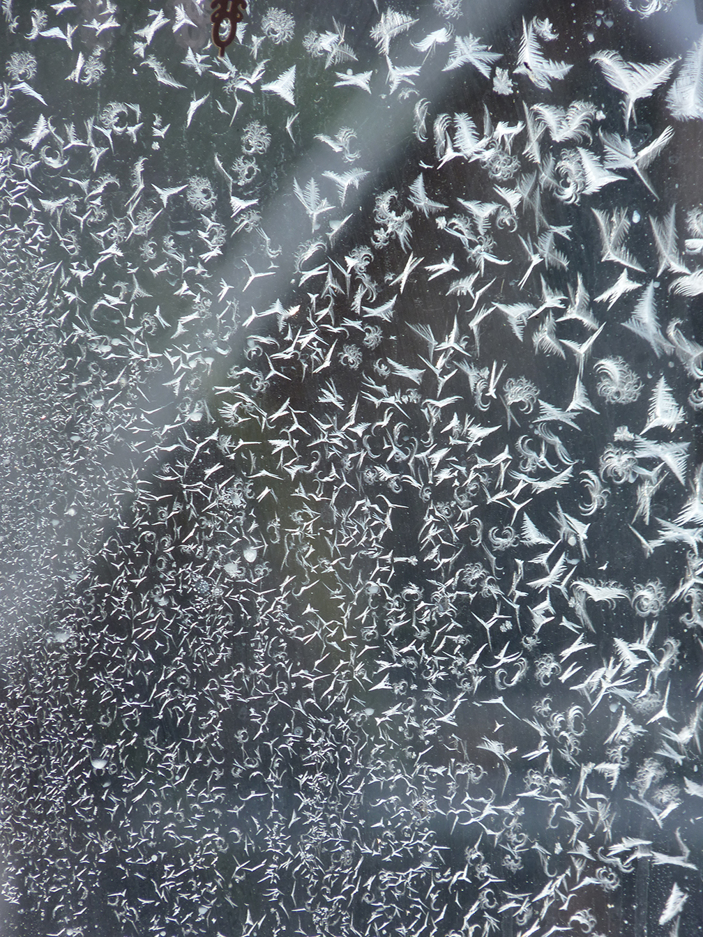 My early morning, winter windows expose delicate formations that are magical, intricate and transforming. The sun can turn them to gold. Apparenty the ice crystals are changing their forms with our new climate.