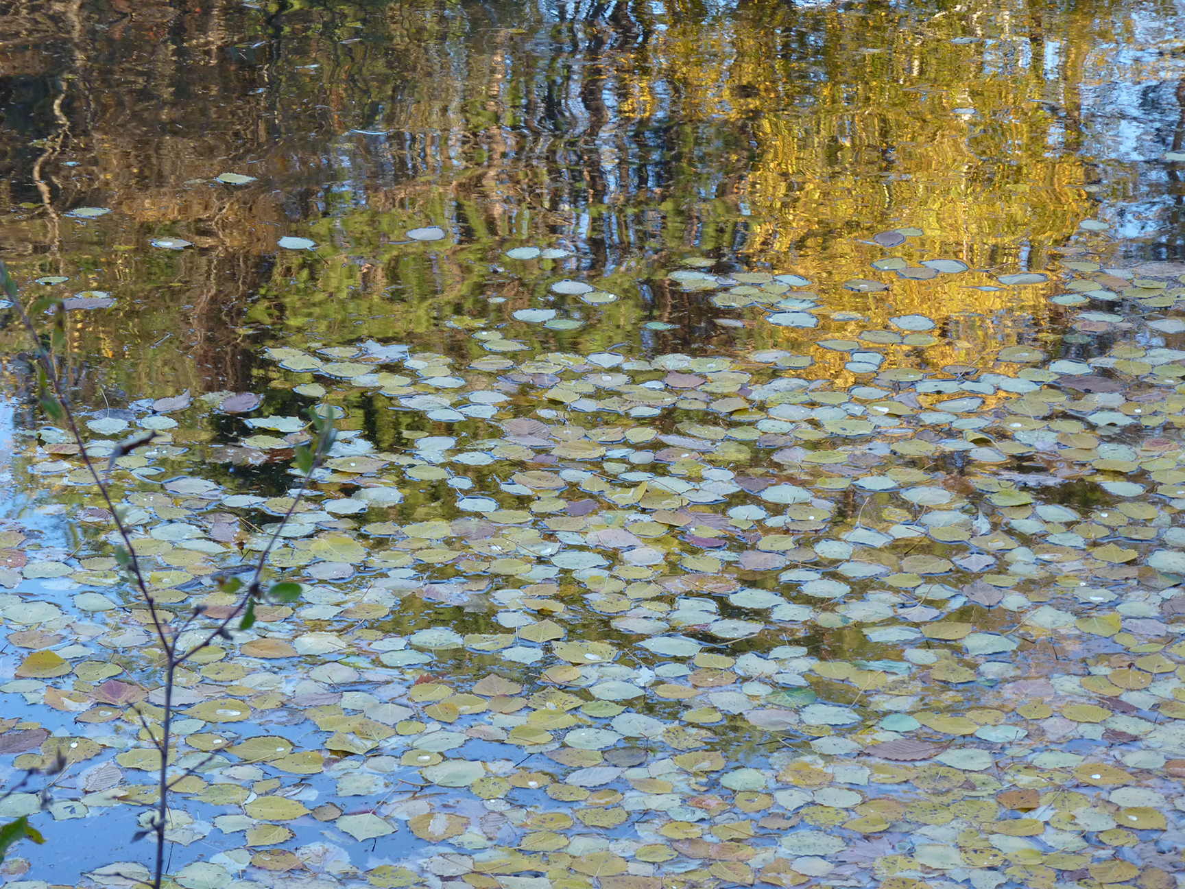 Water has been my concern for my life time. Starting with my childhood love of playing in brooks, much of my choreography came from the movement and texture of its flow. Now in my time of reflection water provides endless pictures sometimes Klimt like.